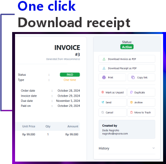 Generate invoices directly from your WooCommerce orders, creating a seamless workflow for your e-commerce store.