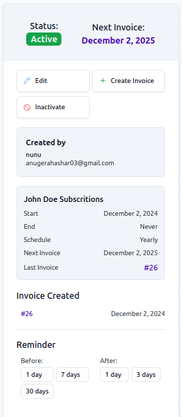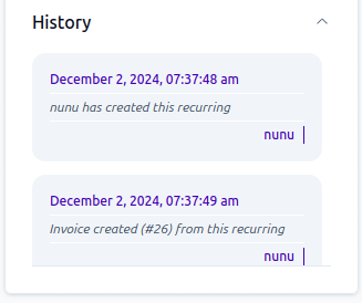 The invoice you have created will have information related to the Recurring Settings you have applied.