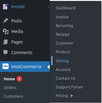 With the invoize plugin you only need to make settings in WooCommerce Settings. You can access it through Invoize > Settings.